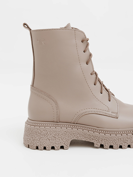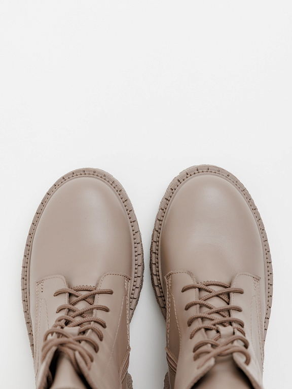 Массивная подошва придаёт образу современное звучание и визуально делает ноги стройнее, а сочетание шнуровки и боковой молнии обеспечивает удобство и надёжную фиксацию.